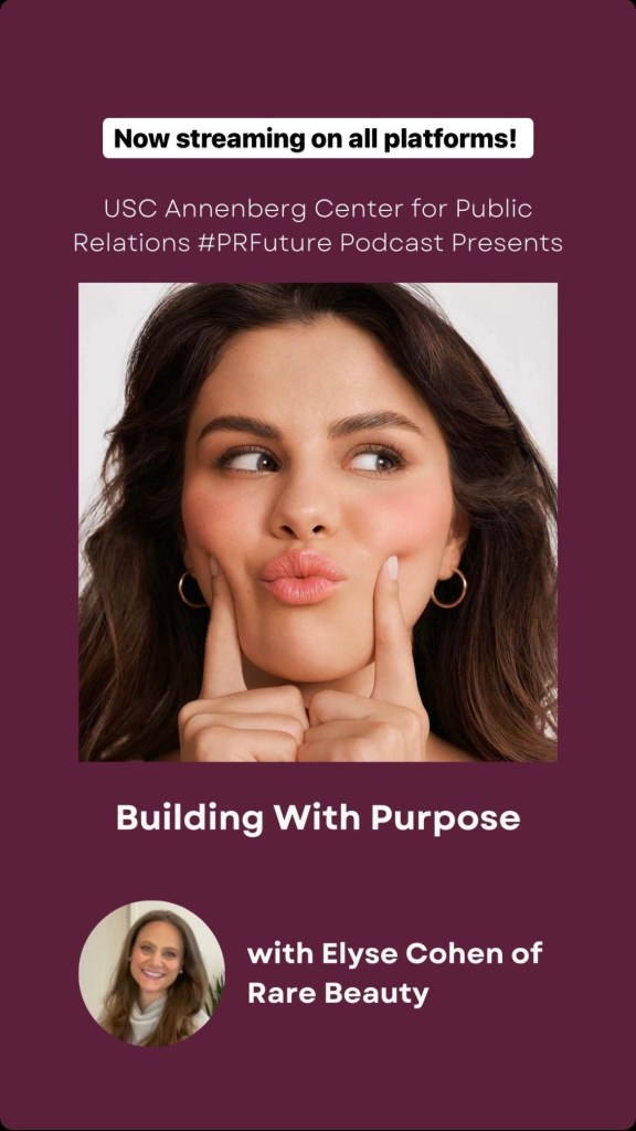 In November 2021, the USC Center for Public Relations released an episode of #PRFuture with Elyse Cohen, VP of Social Impact and Inclusion for Rare Beauty. Along with producing the episode, I created social media content and copy for cross-platform promotion, and posted it according to a strategic plan I created. The content was shared by our team and Rare Beauty employees.